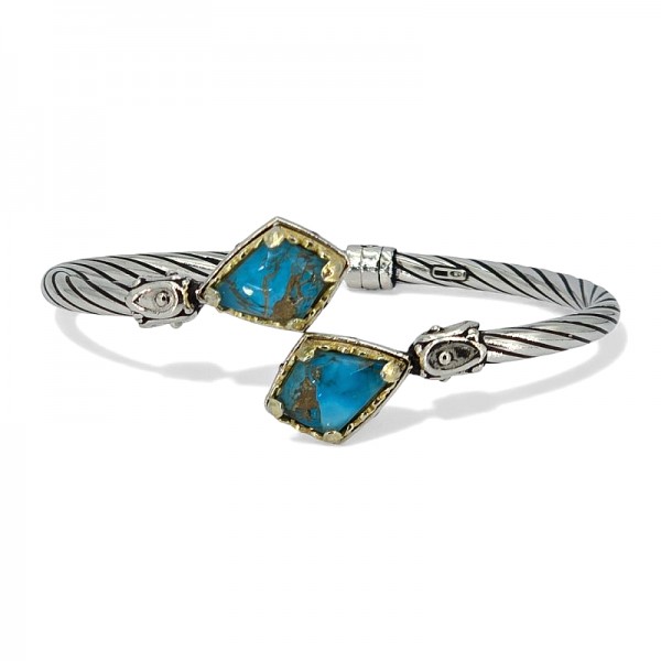 ΧΕΙΡΟΠΟΙΗΤΟ ΒΡΑΧΙΟΛΙ ΧΕΙΡΟΠΕΔΑ ΑΣΗΜΙ925 ΕΠΙΧΡΥΣΩΣΗ Κ18 ΜΕ COPPER ΤΥΡΚΟΥΑΖ ΠΕΤΡΑ