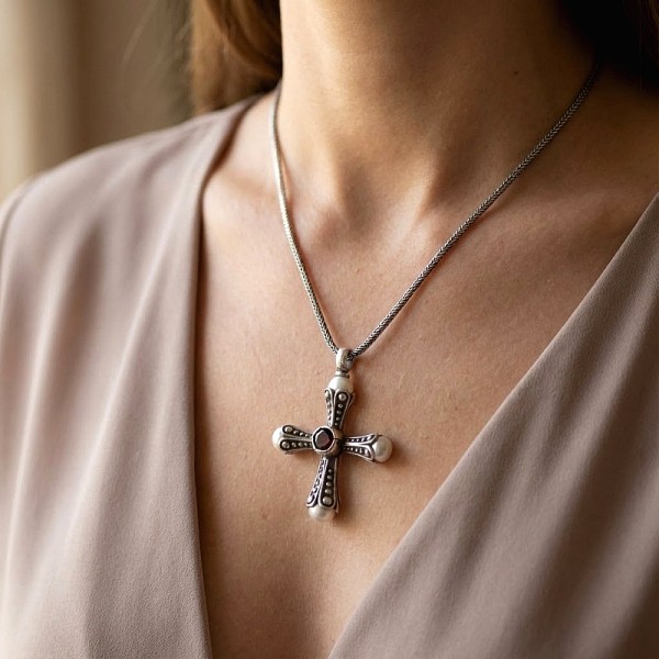ΧΕΙΡΟΠΟΙΗΤΟΣ ΣΤΑΥΡΟΣ ΑΠΟ ΑΣΗΜΙ925 ΜΕ ΓΡΑΝΑΔΑ ΠΕΤΡΑ ΚΑΙ ΜΑΡΓΑΡΙΤΑΡΙ