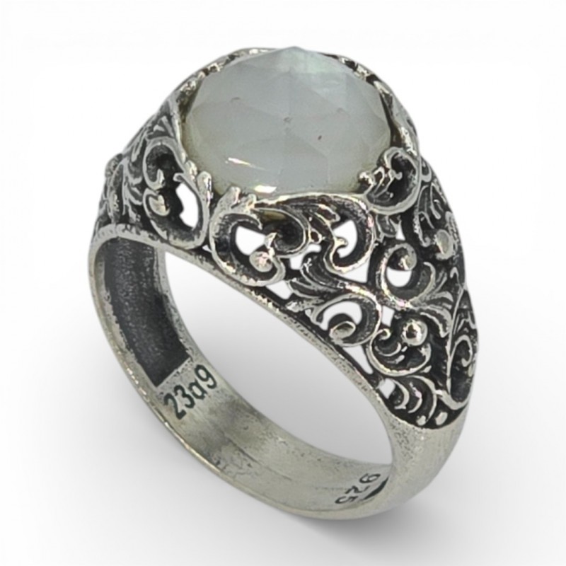 BYZANTINΟ ΣΚΑΛΙΣΤΟ ΧΕΙΡΟΠΟΙΗΤΟ ΔΑΧΤΥΛΙΔΙ ΑΣΗΜΙ925 ΜΕ ΦΙΛΝΤΙΣΙ ΠΕΤΡΑ