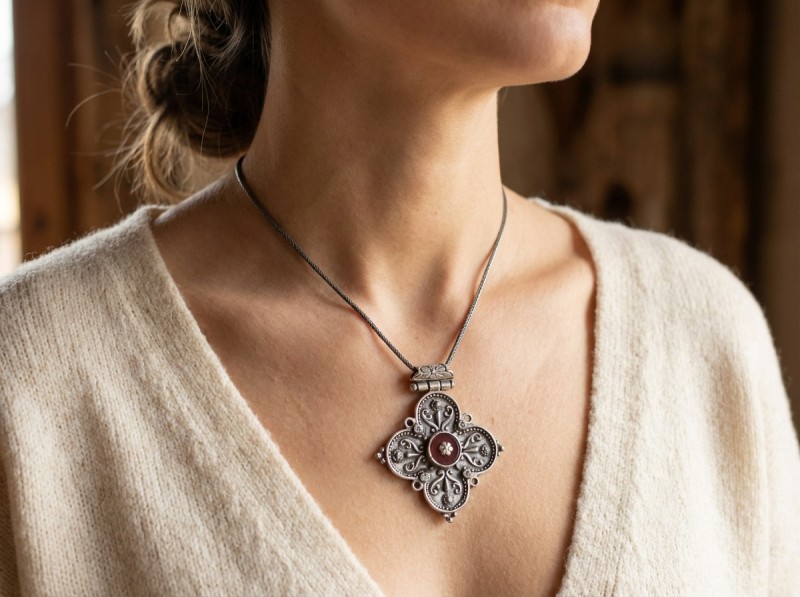 ΑΝΤΙΚΕ ΣΚΑΛΙΣΤΟΣ ΣΤΑΥΡΟΣ ΑΣΗΜΙ925 ΜΕ ΚΟΡΝΕΟΛΗ ΠΕΤΡΑ