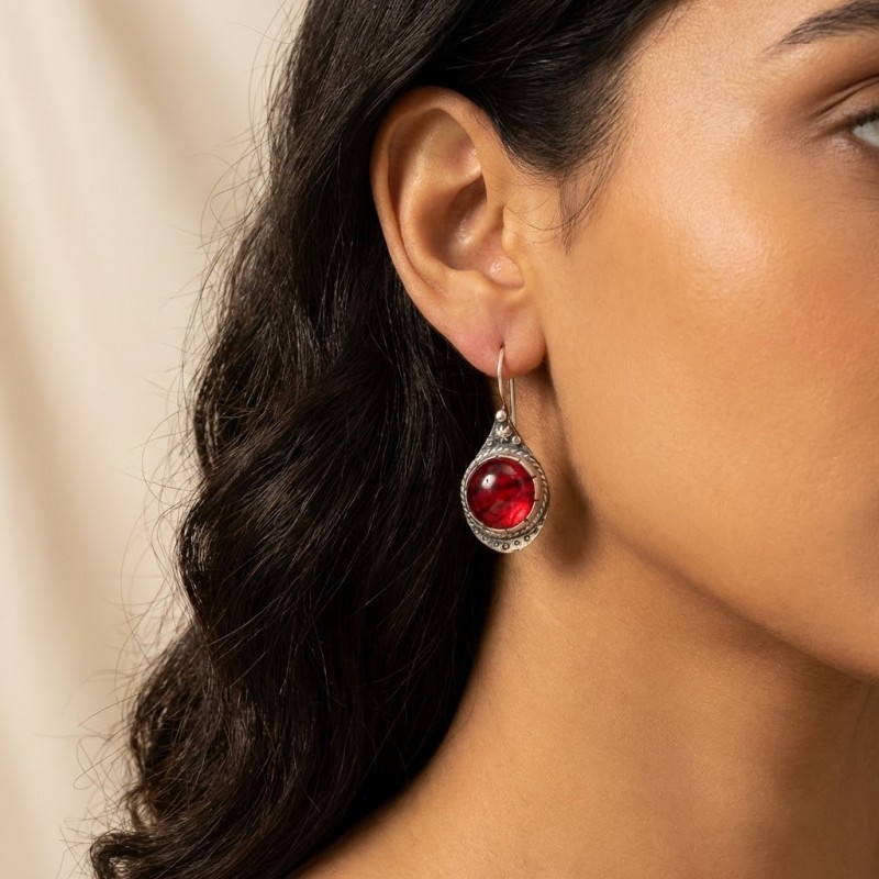 ΑΝΤΙΚΕ ΣΚΟΥΛΑΡΙΚΙΑ ΑΣΗΜΙ925 ΜΕ ΚΟΚΚΙΝΟ ΖΙΡΚΟΝ ΠΕΤΡΑ