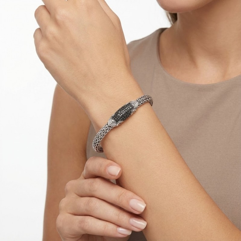 ΧΕΙΡΟΠΟΙΗΤΟ ΒΡΑΧΙΟΛΙ ΑΣΗΜΙ925 ΜΕ ΜΑΥΡΑ ΖΙΡΚΟΝ