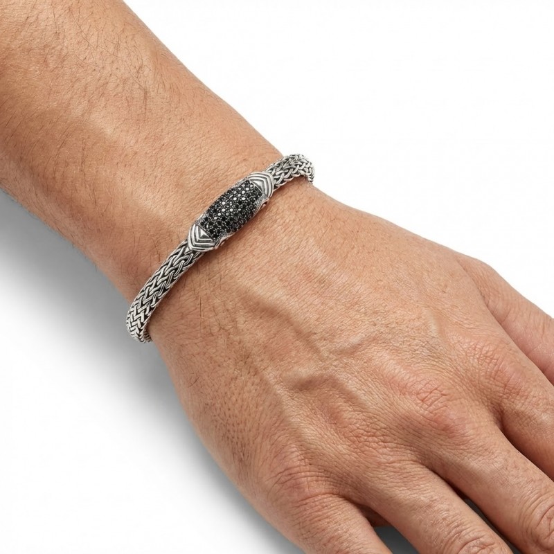 ΧΕΙΡΟΠΟΙΗΤΟ ΒΡΑΧΙΟΛΙ ΑΣΗΜΙ925 ΜΕ ΜΑΥΡΑ ΖΙΡΚΟΝ