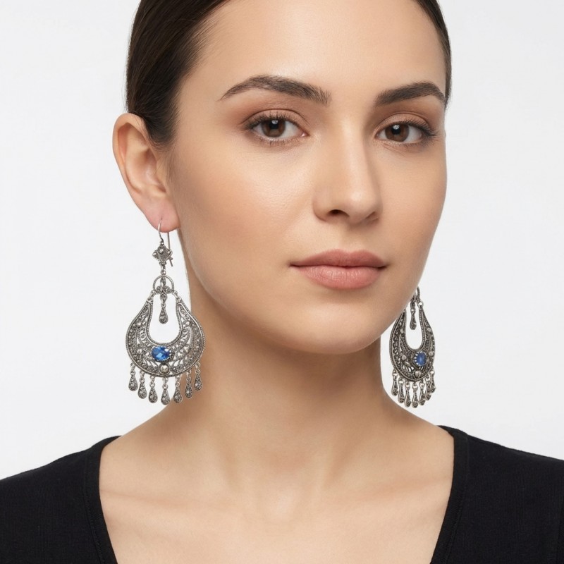 ΚΡΕΜΑΣΤΑ ΣΚΟΥΛΑΡΙΚΙΑ ΦΙΛΙΓΚΡΑΝ ΑΠΟ ΑΣΗΜΙ925 Κ ΑQUA MARINA ΠΕΤΡΑ
