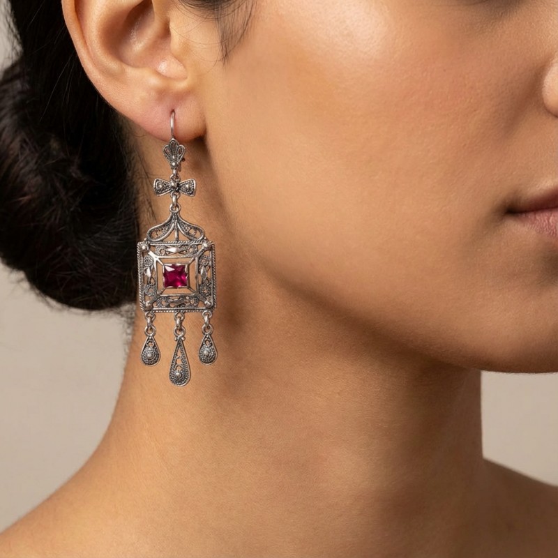 ΚΡΕΜΑΣΤΑ ΦΙΛΙΓΚΡΑΝ ΧΕΙΡΟΠΟΙΗΤΑ ΣΚΟΥΛΑΡΙΚΙΑ ΑΠΟ ΑΣΗΜΙ925 ΚΑΙ ΡΟΥΜΠΙΝΟΓΡΑΝΑΔΑ ΠΕΤΡΑ