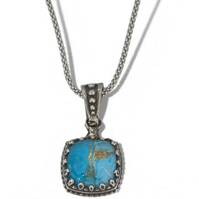 ΒΥΖΑΝΤΙΝΟ ΜΕΝΤΑΓΙΟΝ ΑΣΗΜΙ925 ΜΕ COPPER ΤΥΡΚΟΥΑΖ ΠΕΤΡΑ