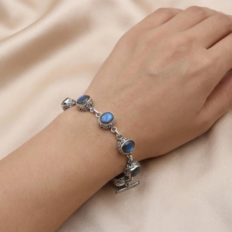 ΧΕΙΡΟΠΟΙΗΤΟ ΣΚΑΛΙΣΤΟ ΒΡΑΧΙΟΛΙ ΑΣΗΜΙ925 ΜΕ ΛΑΜΠΡΑΝΤΟΡΙΤΗ ΠΕΤΡΑ