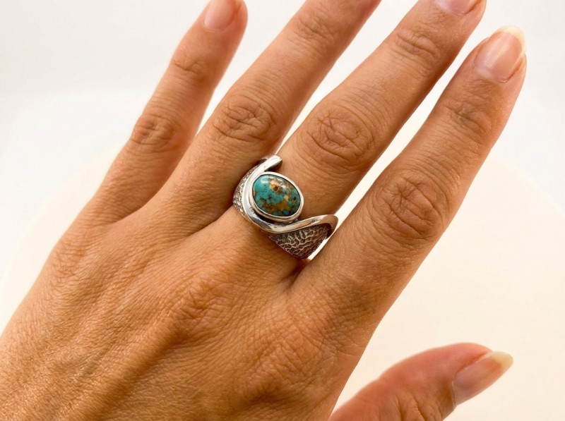 ΧΕΙΡΟΠΟΙΗΤΟ ΔΑΧΤΥΛΙΔΙ ΑΠΟ ΑΣΗΜΙ925 ΚΑΙ ΤΥΡΚΟΥΑΖ ΠΕΤΡΑ