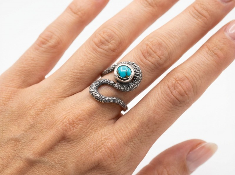 ΧΕΙΡΟΠΟΙΗΤΟ ΔΑΧΤΥΛΙΔΙ ΑΠΟ ΑΣΗΜΙ925 ΚΑΙ ΤΥΡΚΟΥΑΖ ΠΕΤΡΑ