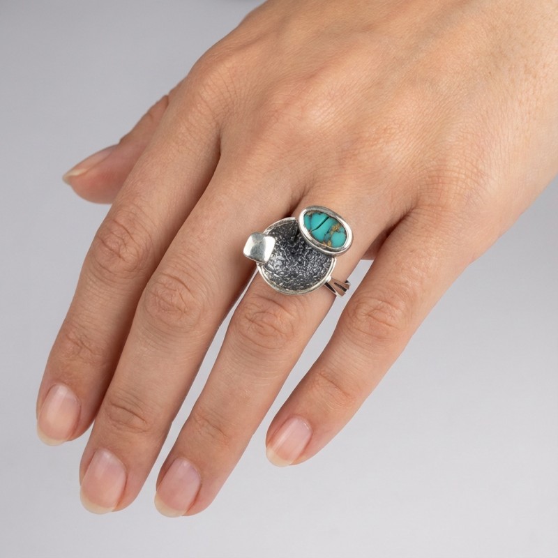 ΧΕΙΡΟΠΟΙΗΤΟ ΔΑΧΤΥΛΙΔΙ ΑΠΟ ΑΣΗΜΙ925 ΜΕ ΤΥΡΚΟΥΑΖ ΚΑΙ ΜΑΡΓΑΡΙΤΑΡΙ