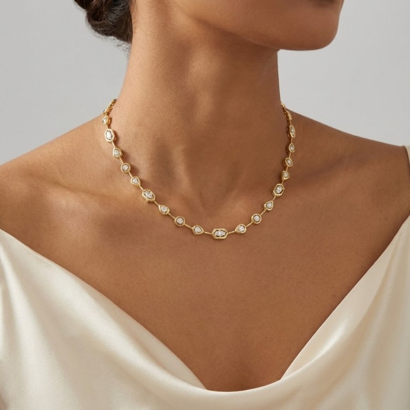 ΚΟΛΙΕ ΠΕΡΙΔΕΡΑΙΟ ΑΣΗΜΙ925 ΜΕ ΕΠΙΧΡΥΣΩΣΗ Κ18 ΚΑΙ ΖΙΡΚΟΝ ΠΕΤΡΕΣ