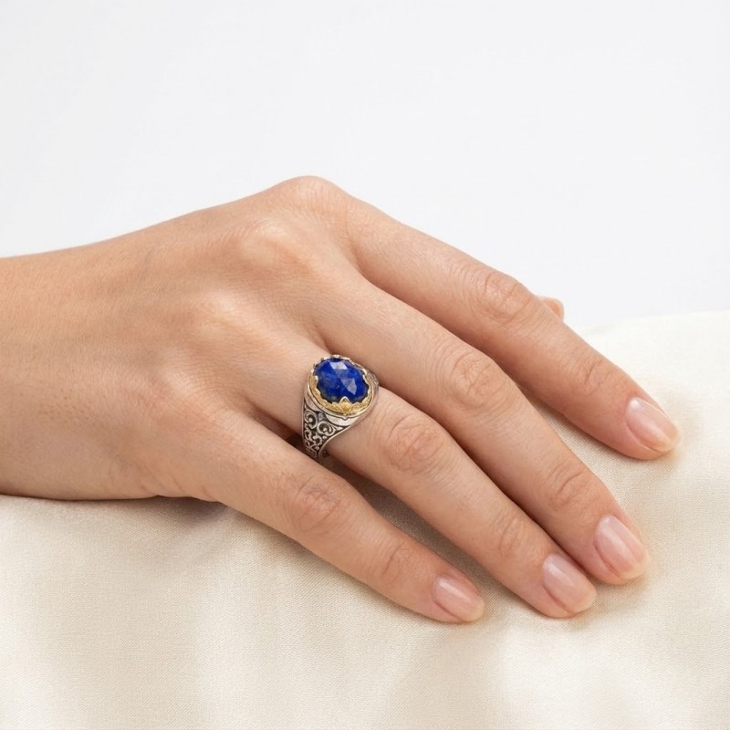 ΒΥΖΑΝΤΙΝΟ ΣΚΑΛΙΣΤΟ ΔΑΧΤΥΛΙΔΙ ΑΣΗΜΙ925 ΜΕ ΕΠΙΧΡΥΣΩΣΗ Κ18 ΚΑΙ ΛΑΠΙΣ ΠΕΤΡΑ