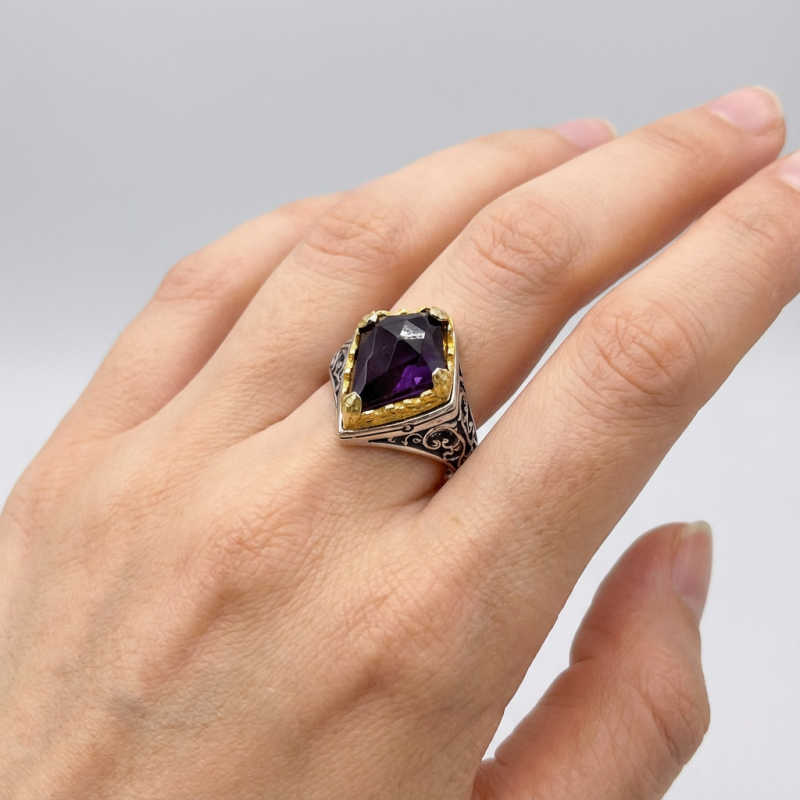 ΒΥΖΑΝΤΙΝΟ ΣΚΑΛΙΣΤΟ ΔΑΧΤΥΛΙΔΙ ΑΣΗΜΙ925 ΜΕ ΕΠΙΧΡΥΣΩΣΗ Κ18 ΚΑΙ ΑΜΕΘΥΣΤΟ ΠΕΤΡΑ