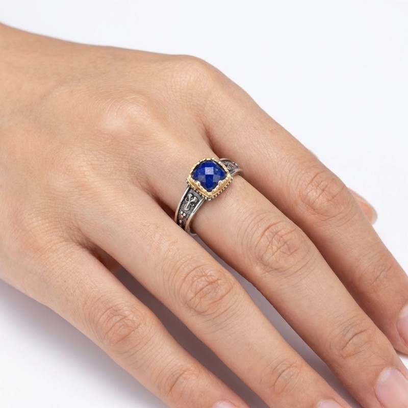 ΧΕΙΡΟΠΟΙΗΤΟ ΔΑΧΤΥΛΙΔΙ ΑΠΟ ΑΣΗΜΙ925 ΜΕ ΧΡΥΣΟΛΙΘΟ ΚΑΙ ΖΙΡΚΟΝ ΠΕΤΡΑ