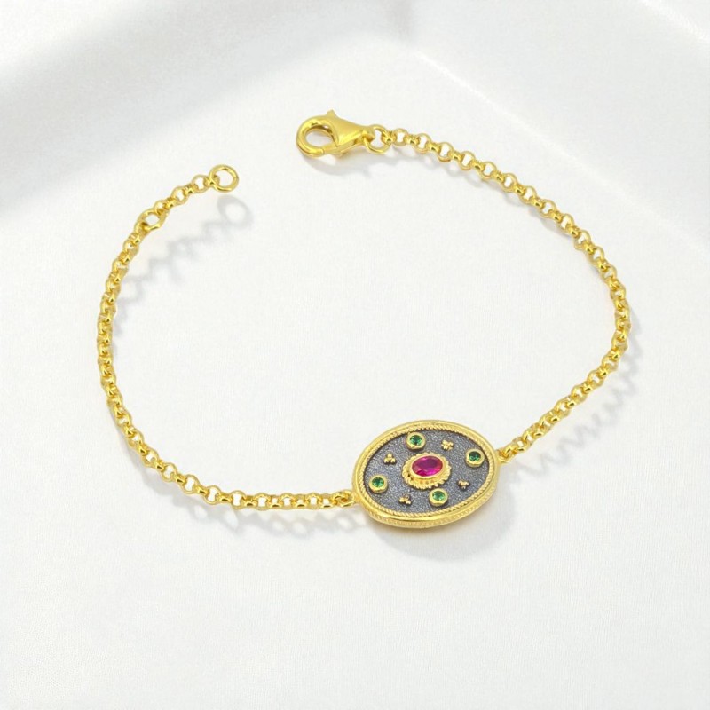 ΒΥΖΑΝΤΙΝΟ ΔΙΧΡΩΜΟ ΒΡΑΧΙΟΛΙ ΑΣΗΜΙ925 ΜΕ ΕΠΙΧΡΥΣΩΣΗ Κ18 ΚΑΙ ΡΟΥΜΠΙΝΟΓΡΑΝΑΔΑ ΠΕΤΡΑ