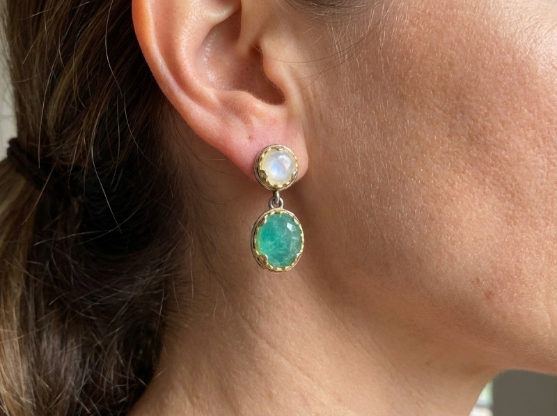 ΒΥΖΑΝΤΙΝΑ ΣΚΟΥΛΑΡΙΚΙΑ ΑΣΗΜΙ925 ΜΕ ΕΠΙΧΡΥΣΩΣΗ Κ18 ΦΙΛΝΤΙΣΙ ΚΑΙ ΑΜΑΖΟΝΙΤΗ ΠΕΤΡΑ