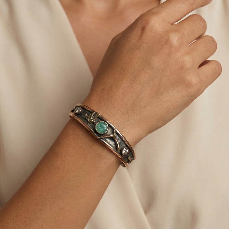 ΑΝΤΙΚΕ ΧΕΙΡΟΠΟΙΗΤΟ ΒΡΑΧΙΟΛΙ ΒΕΡΓΑ ΑΣΗΜΙ925 ΜΕ ΖΙΡΚΟΝ ΠΕΤΡΕΣ