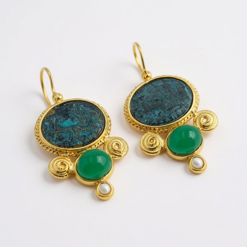 ΑΡΧΑΙΚΑ ΣΚΟΥΛΑΡΙΚΙΑ ΑΣΗΜΙ925 ΕΠΙΧΡΥΣΩΣΗ Κ18 ΜΕ ΑΧΑΤΗ ΠΕΤΡΑ