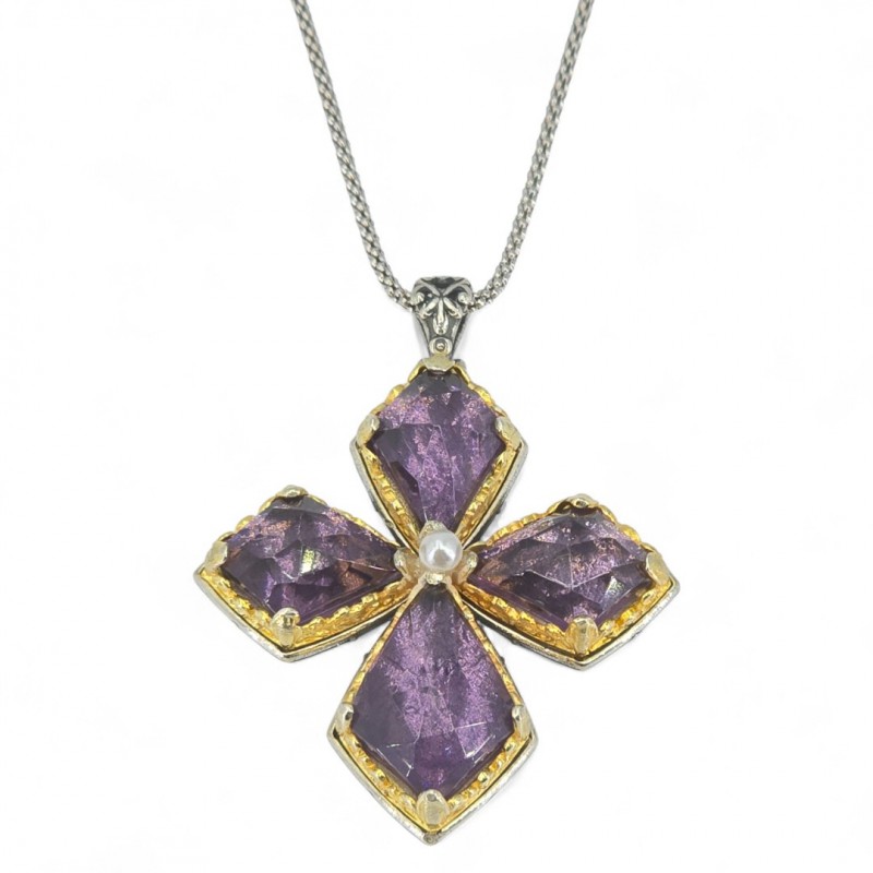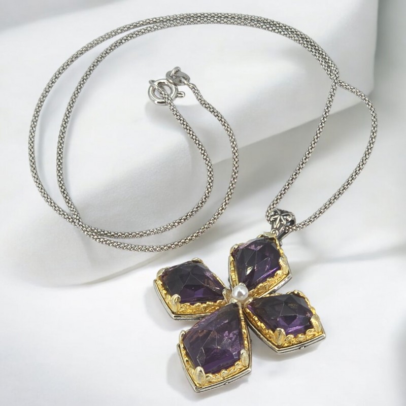 ΒΥΖΑΝΤΙΝΟΣ ΧΕΙΡΟΠΟΙΗΤΟΣ ΣΤΑΥΡΟΣ ΑΣΗΜΙ925 ΜΕ ΑΜΕΘΥΣΤΟ ΠΕΤΡΕΣ