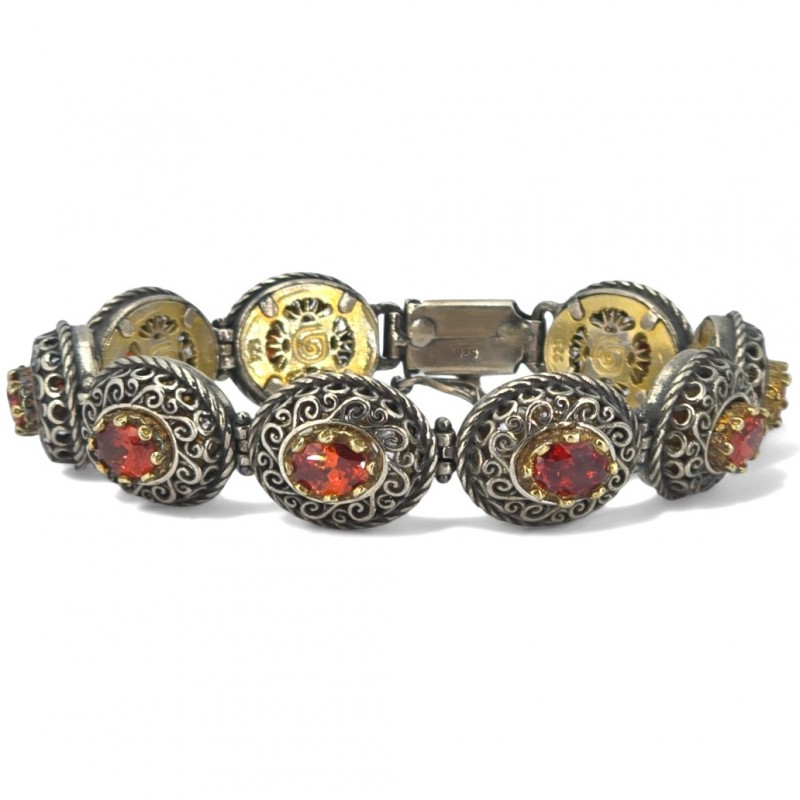 ΧΕΙΡΟΠΟΙΗΤΟ ΒΥΖΑΝΤΙΝΟ ΒΡΑΧΙΟΛΙ ΑΣΗΜΙ925 ΜΕ ΓΡΑΝΑΔΑ ΠΕΤΡΑ ΚΑΙ ΕΠΙΧΡΥΣΩΣΗ Κ18
