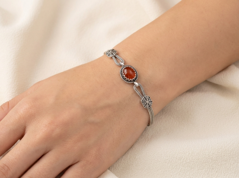 ΧΕΙΡΟΠΟΙΗΤΟ ΑΛΥΣΙΔΩΤΟ ΒΡΑΧΙΟΛΙ ΑΣΗΜΙ925 ΜΕ ΚΟΡΝΕΟΛΗ ΠΕΤΡΑ