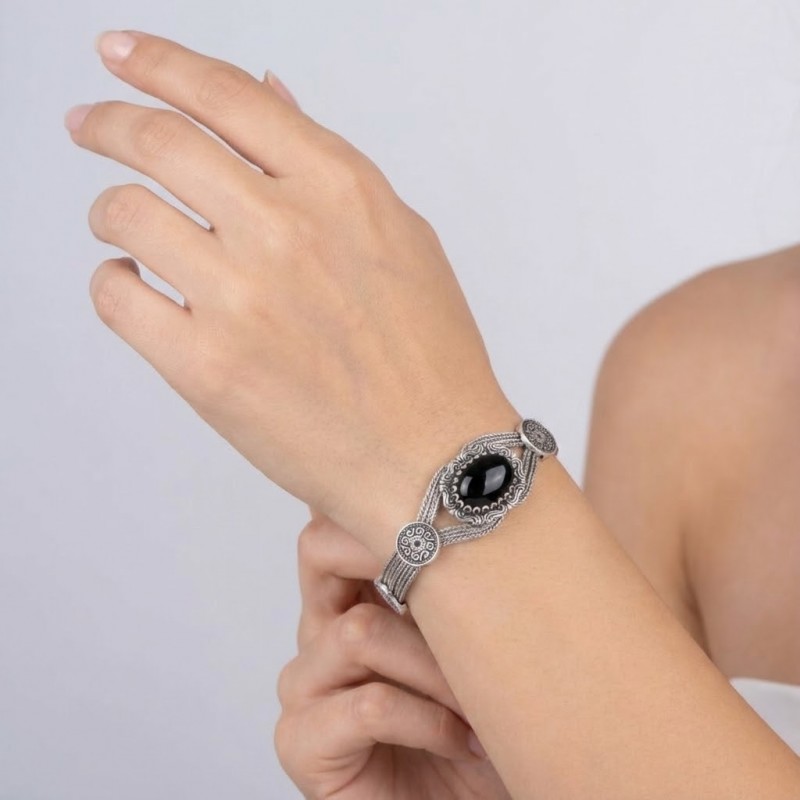 ΧΕΙΡΟΠΟΙΗΤΟ ΑΛΥΣΙΔΩΤΟ ΒΡΑΧΙΟΛΙ ΑΣΗΜΙ925 ΜΕ ΟΝΥΧΑ ΠΕΤΡΑ