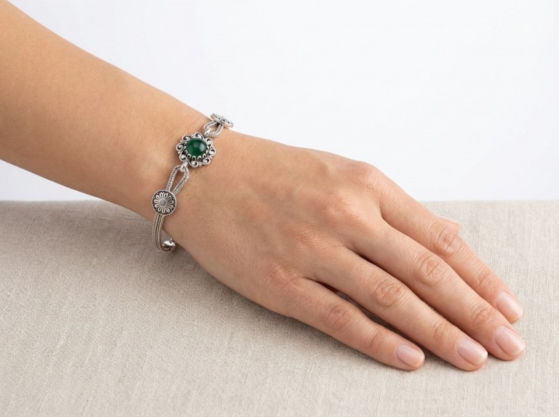 ΧΕΙΡΟΠΟΙΗΤΟ ΑΛΥΣΙΔΩΤΟ ΒΡΑΧΙΟΛΙ ΑΣΗΜΙ925 ΚΑΙ ΠΡΑΣΙΝΟ ΑΧΑΤΗ ΠΕΤΡΑ