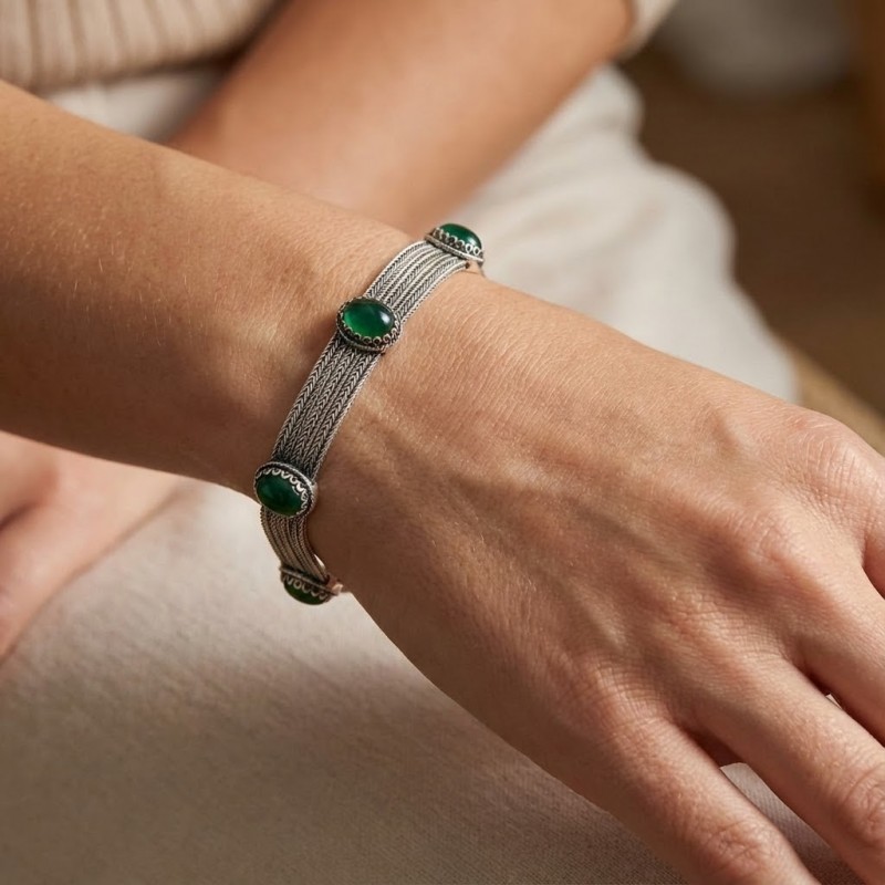 ΧΕΙΡΟΠΟΙΗΤΟ ΑΛΥΣΙΔΩΤΟ ΒΡΑΧΙΟΛΙ ΑΣΗΜΙ925 ΚΑΙ ΠΡΑΣΙΝΟ ΑΧΑΤΗ ΠΕΤΡΑ