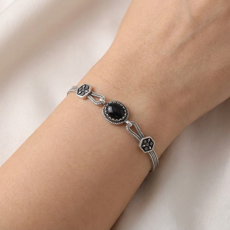 ΑΛΥΣΙΔΩΤΟ ΒΡΑΧΙΟΛΙ ΑΣΗΜΙ925 ΜΕ ΑΧΑΤΗ ΠΕΤΡΑ