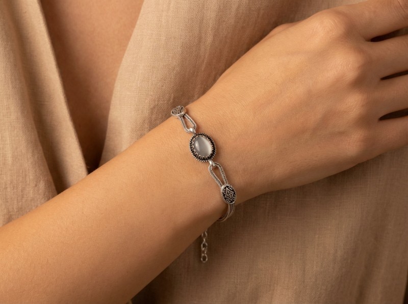 ΧΕΙΡΟΠΟΙΗΤΟ ΑΛΥΣΙΔΩΤΟ ΒΡΑΧΙΟΛΙ ΑΣΗΜΙ925 ΚΑΙ ΑΧΑΤΗ ΠΕΤΡΑ