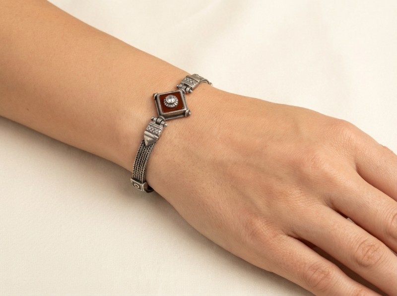 ΑΝΤΙΚΕ ΑΛΥΣΙΔΩΤΟ ΒΡΑΧΙΟΛΙ ΑΣΗΜΙ925 ΜΕ ΚΟΡΝΕΟΛΗ ΚΑΙ ΖΙΡΚΟΝ ΠΕΤΡΑ
