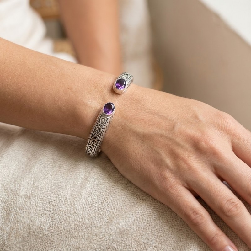 ΧΕΙΡΟΠΟΙΗΤΟ ΣΚΑΛΙΣΤΟ ΒΡΑΧΙΟΛΙ ΧΕΙΡΟΠΕΔΑ ΑΠΟ ΑΣΗΜΙ925 ΚΑΙ ΑΜΕΘΥΣΤΟ ΠΕΤΡΑ