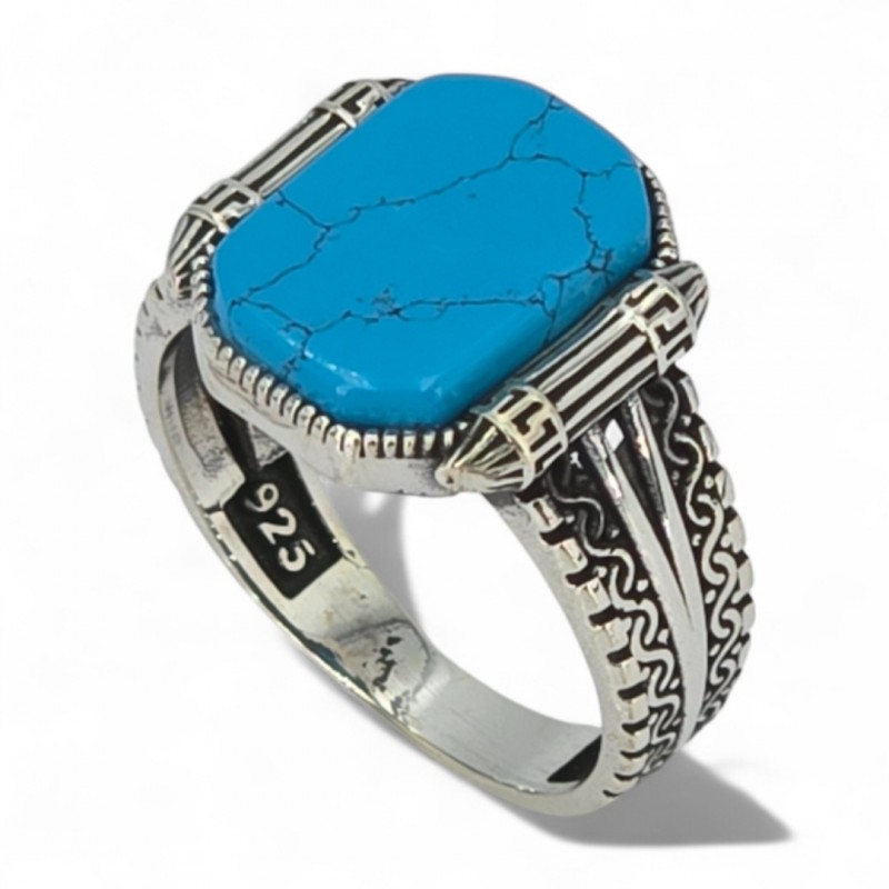 ΑΝΔΡΙΚΟ ΔΑΧΤΥΛΙΔΙ ΑΠΟ ΑΣΗΜΙ925 ΚΑΙ ΤΥΡΚΟΥΑΖ ΠΕΤΡΑ