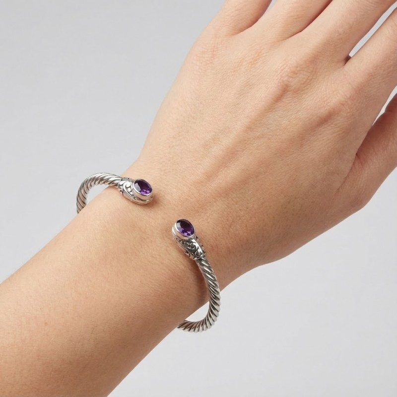 ΧΕΙΡΟΠΟΙΗΤΟ ΣΚΑΛΙΣΤΟ ΒΡΑΧΙΟΛΙ ΧΕΙΡΟΠΕΔΑ ΑΠΟ ΑΣΗΜΙ925 ΚΑΙ ΑΜΕΘΥΣΤΟ ΠΕΤΡΑ