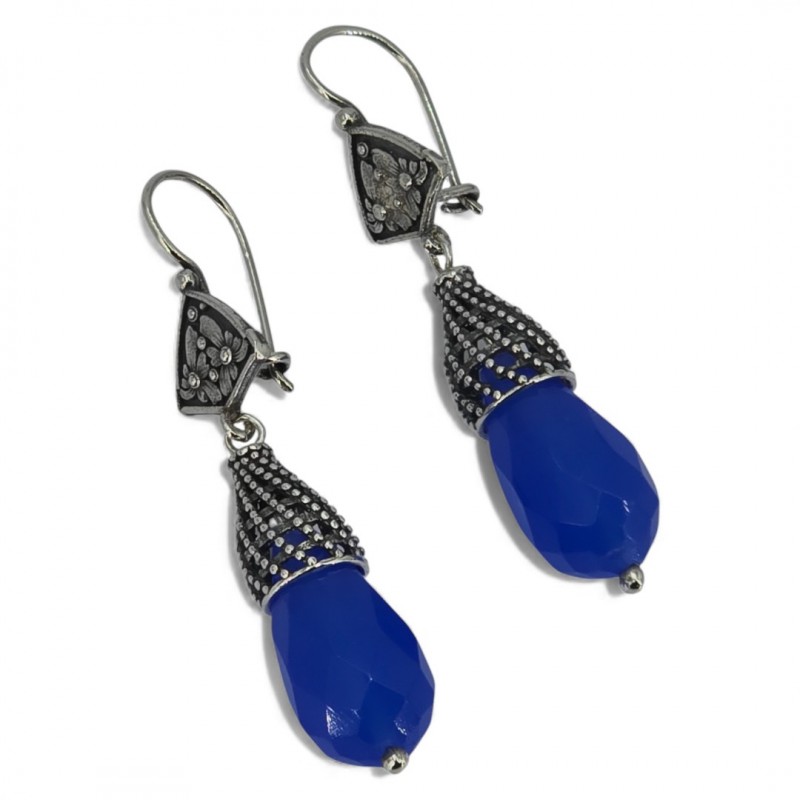 ΑΝΤΙΚΕ ΚΡΕΜΑΣΤΑ ΣΚΟΥΛΑΡΙΚΙΑ ΑΣΗΜΙ925 ΜΕ ΜΠΛΕ ΑΧΑΤΗ ΠΕΤΡΑ