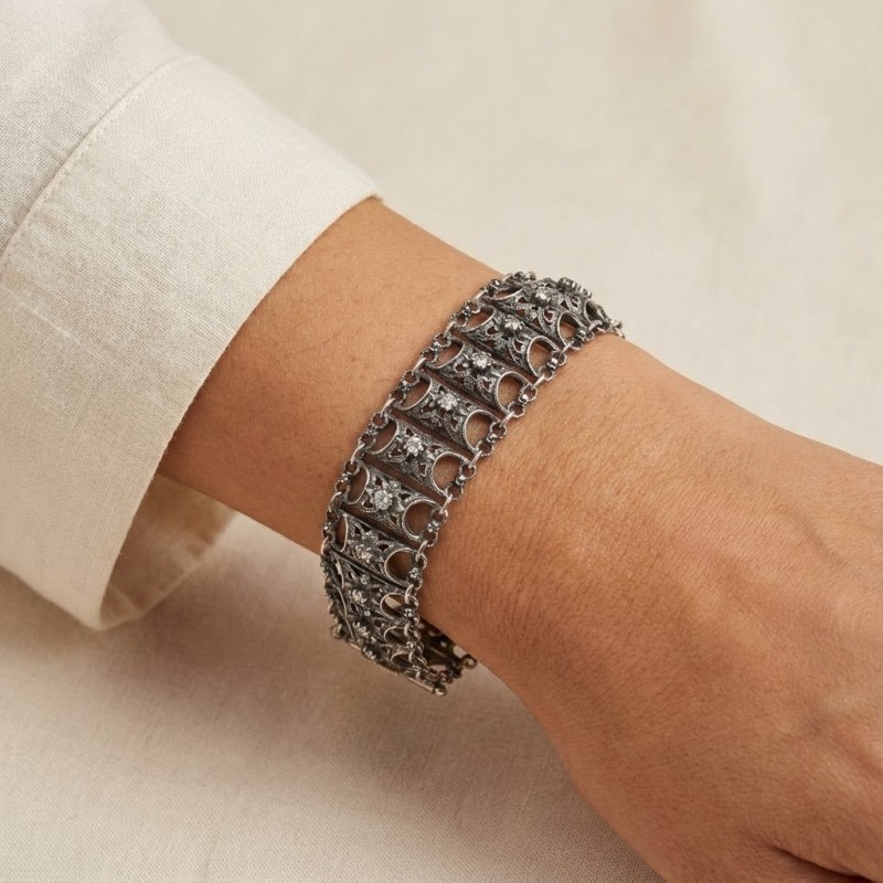 ΧΕΙΡΟΠΟΙΗΤΟ ΑΝΤΙΚΕ ΒΡΑΧΙΟΛΙ ΑΛΥΣΙΔΩΤΟ ΑΠΟ ΑΣΗΜΙ925 ΚΑΙ ΖΙΡΚΟΝ ΠΕΤΡΕΣ