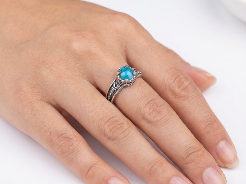 ΒΥΖΑΝΤΙΝΟ ΔΑΧΤΥΛΙΔΙ ΑΣΗΜΙ925 ΜΕ COPPER TYRKOYAZ ΠΕΤΡΑ