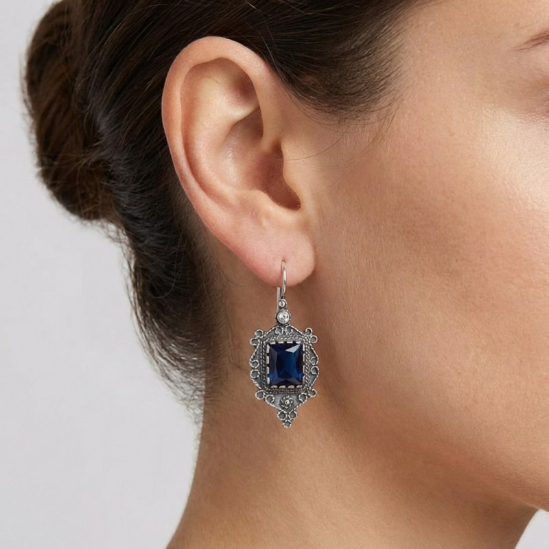 ΑΝΤΙΚΕ ΣΚΟΥΛΑΡΙΚΙΑ ΑΣΗΜΙ925 ΜΕ ΜΠΛΕ ΖΙΡΚΟΝ ΠΕΤΡΑ