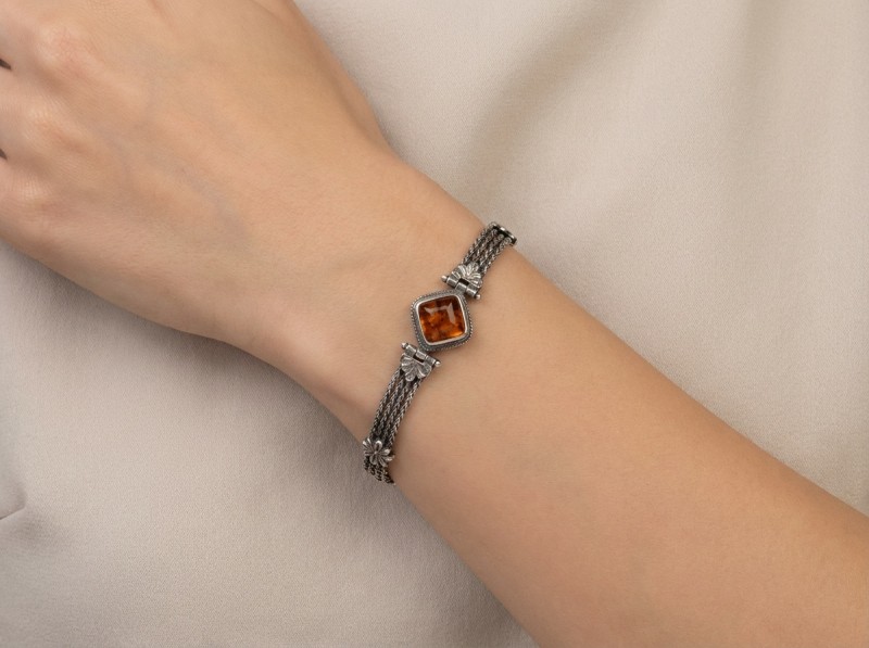 ΑΛΥΣΙΔΩΤΟ ΑΝΤΙΚΕ ΒΡΑΧΙΟΛΙ ΑΠΟ ΑΣΗΜΙ925 ΜΕ ΚΕΧΡΙΜΠΑΡΙ ΠΕΤΡΑ
