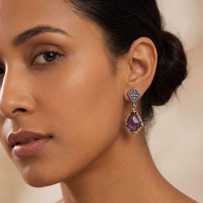 ΒΥΖΑΝΤΙΝΑ ΣΚΟΥΛΑΡΙΚΙΑ ΑΣΗΜΙ925 ΜΕ ΕΠΙΧΡΥΣΩΣΗ Κ18 KΑΙ ΑΜΕΘΥΣΤΟ ΠΕΤΡΑ