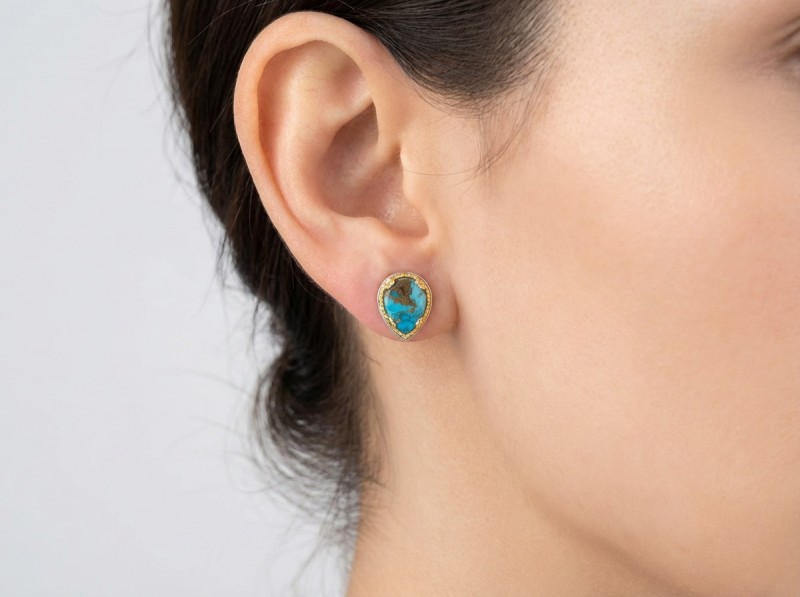 ΒΥΖΑΝΤΙΝΑ ΚΑΡΦΩΤΑ ΣΚΟΥΛΑΡΙΚΙΑ ΑΣΗΜΙ 925 ΜΕ ΕΠΙΧΡΥΣΩΣΗ Κ18 ΚΑΙ COPPER ΤΥΡΚΟΥΑΖ ΠΕΤΡΑ
