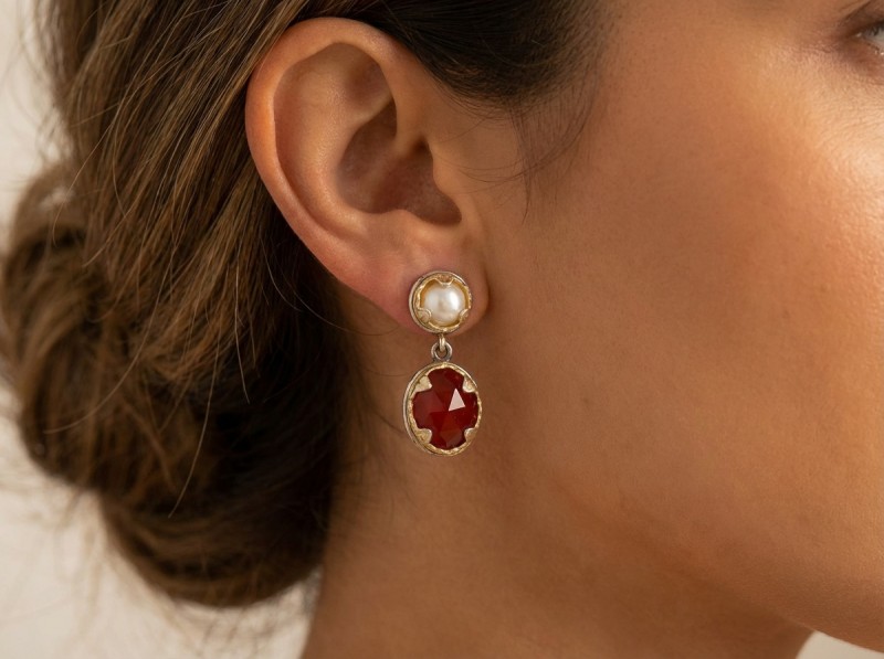 ΒΥΖΑΝΤΙΝΑ ΣΚΟΥΛΑΡΙΚΙΑ ΑΣΗΜΙ925 ΜΕ ΕΠΙΧΡΥΣΩΣΗ Κ18 ΜΑΡΓΑΡΙΤΑΡΙ ΚΑΙ ΡΟΥΜΠΙΝΙ ΠΕΤΡΑ