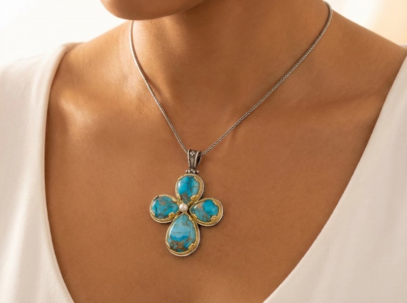 ΒΥΖΑΝΤΙΝΟΣ ΧΕΙΡΟΠΟΙΗΤΟΣ ΣΤΑΥΡΟΣ ΑΣΗΜΙ925 ΜΕ COOPER ΤΥΡΚΟΥΑΖ ΠΕΤΡΕΣ ΚΑΙ ΜΑΡΓΑΡΙΤΑΡΙ