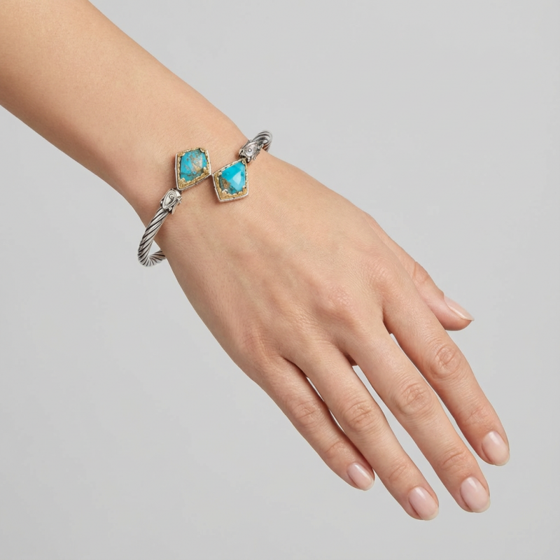 ΧΕΙΡΟΠΟΙΗΤΟ ΒΡΑΧΙΟΛΙ ΧΕΙΡΟΠΕΔΑ ΑΣΗΜΙ925 ΕΠΙΧΡΥΣΩΣΗ Κ18 ΜΕ COPPER ΤΥΡΚΟΥΑΖ ΠΕΤΡΑ