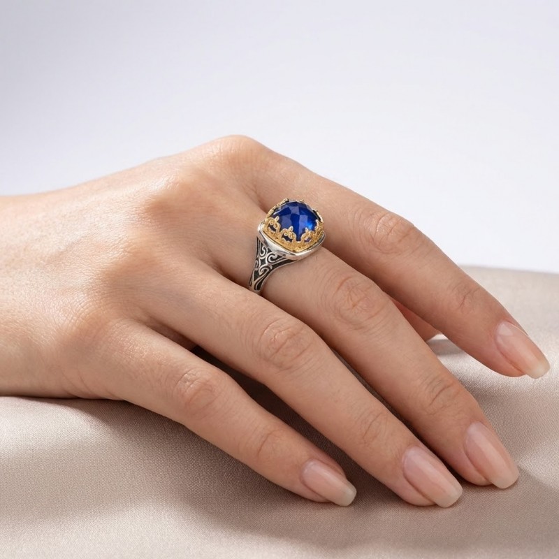 ΒΥΖΑΝΤΙΝΟ ΣΚΑΛΙΣΤΟ ΔΑΧΤΥΛΙΔΙ ΑΣΗΜΙ925 ΜΕ ΕΠΙΧΡΥΣΩΣΗ Κ18 ΚΑΙ ΛΑΠΙΣ ΠΕΤΡΑ