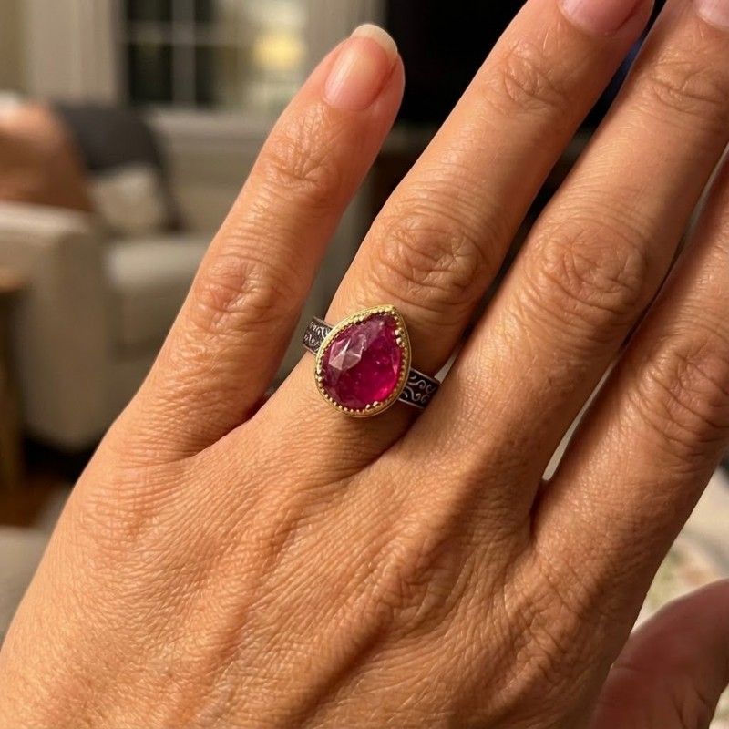 ΒΥΖΑΝΤΙΝΟ ΔΑΧΤΥΛΙΔΙ ΑΣΗΜΙ925 ΜΕ ΕΠΙΧΡΥΣΩΣΗ Κ18 ΚΑΙ ΡΟΥΜΠΙΝΙ ΠΕΤΡΑ