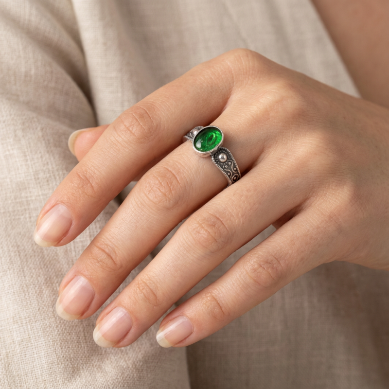 ΑΝΤΙΚΕ ΔΑΧΤΥΛΙΔΙ ΑΠΟ ΑΣΗΜΙ925 ΜΕ ΠΡΑΣΙΝΟ ΑΜΕΘΥΣΤΟ ΠΕΤΡΑ