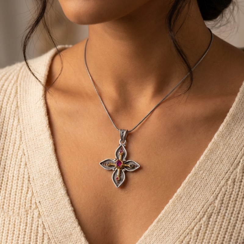 ΒΥΖΑΝΤΙΝΟΣ ΣΤΑΥΡΟΣ ΑΣΗΜΙ925 ΕΠΙΧΡΥΣΩΣΗ Κ18 ΚΑΙ ΓΡΑΝΑΔΑ ΠΕΤΡΑ
