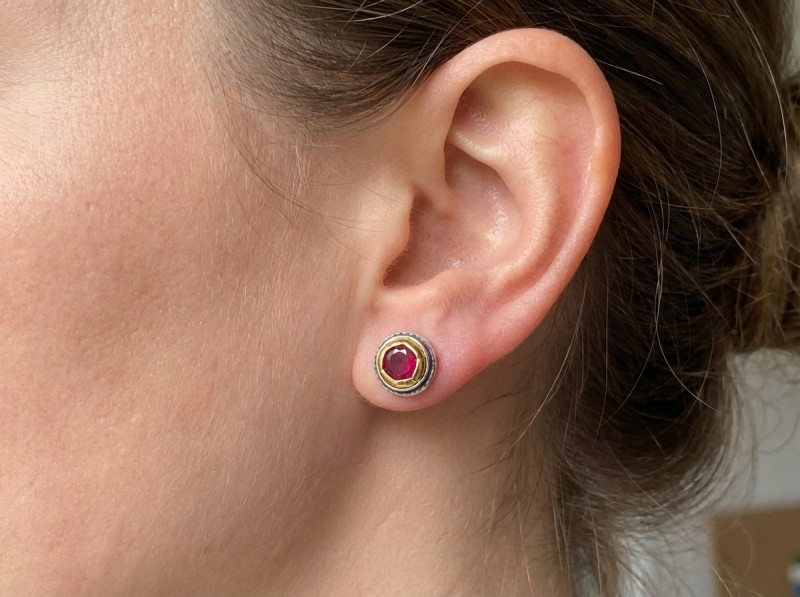 ΚΑΡΦΩΤΑ ΔΙΧΡΩΜΑ ΣΚΟΥΛΑΡΙΚΙΑ ΑΣΗΜΙ925 ΕΠΙΧΡΥΣΩΣΗ Κ18 ΚΑΙ ΓΡΑΝΑΔΑ ΠΕΤΡΑ