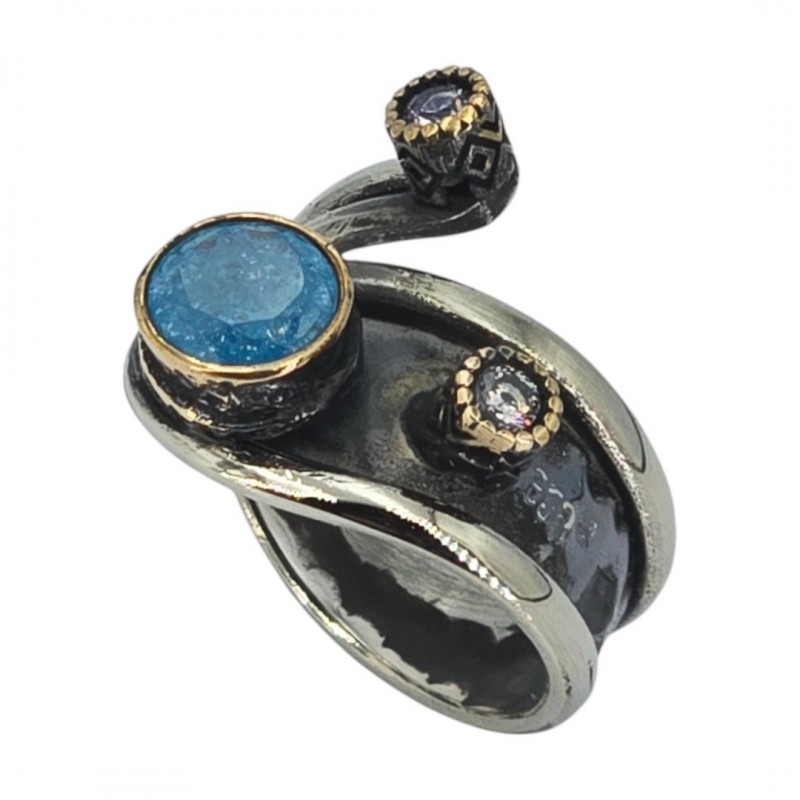 ΧΕΙΡΟΠΟΙΗΤΟ ΔΑΧΤΥΛΙΔΙ ΑΠΟ ΑΣΗΜΙ925 ΜΕ ΖΙΡΚΟΝ ΚΑΙ ΤΟΠΑΖ ΠΕΤΡΕΣ